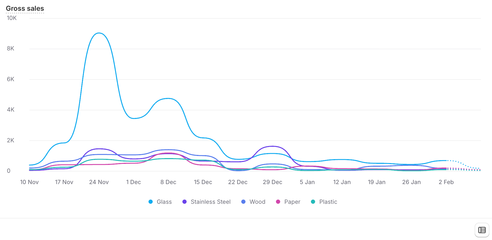 Choose your metrics (e.g. Total Gross Sales, Net Sales, AOV, Orders)